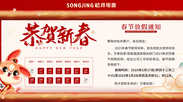尊敬的松井客戶、各位朋友: 虎振雄風留浩氣,兔迎盛世啟新程。歲杪春臨,華章日新,春節即將到來,感謝…
